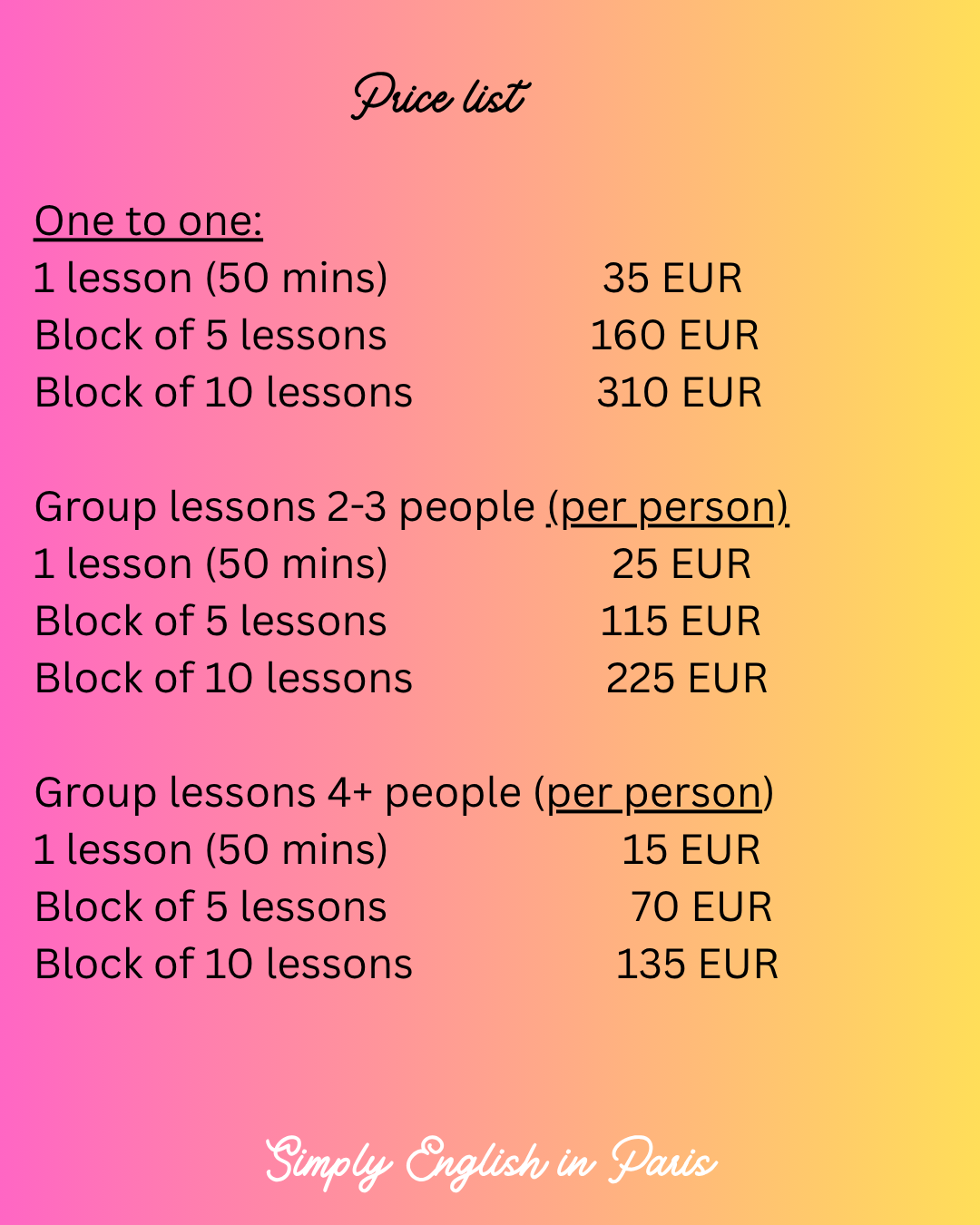 Here are my standard prices. These may need to be modified depending on lesson location.Please get in touch!
